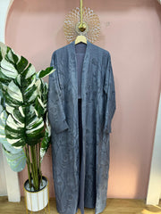 Step into elegance with our Layali Grey abaya – crafted from a textured fabric adorned with delicate floral embroidery, giving...
