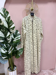 Bold, timeless, and unapologetically elegant — Zahra Noir redefines the classic black abaya. Crafted in fine matte crepe, it features...